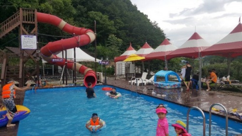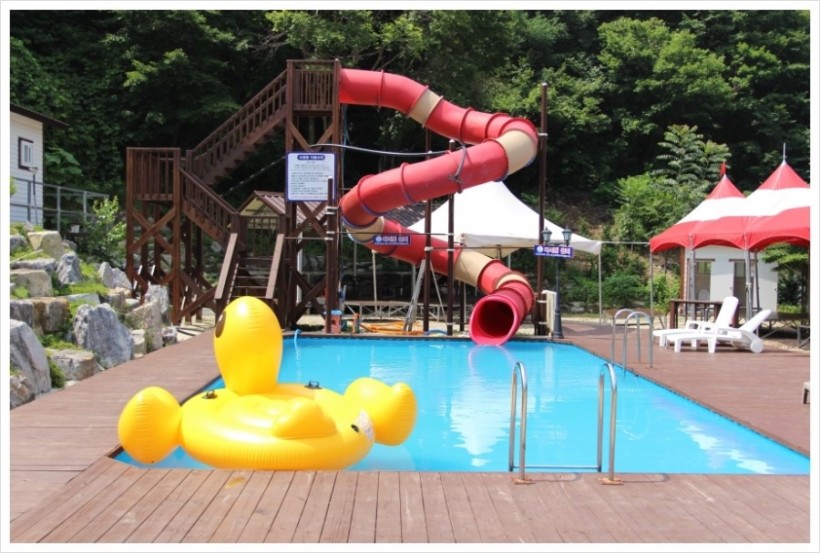 수심은 성인허리정도 오니 아이와같이 시원한 물놀이를 즐기실수있습니다.